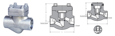 H61H、H61Y 型 800(Lb) 承插焊鍛鋼止回閥有三種體蓋連接設計形式。一種是螺栓式閥蓋:按這種設計形式設計的閥門,其閥體與閥蓋用螺栓螺母連接,纏繞式墊片(316夾柔性石墨制造)密封。客戶有特殊要求時也可采用金屬環連接。第二種設計形式是焊接式閥蓋,按這種設計形式的閥門,其閥體與閥蓋用螺紋連接,全焊密封。客戶有要求時也可采用透焊連接。第三種是壓力自緊式閥蓋,按這種設計形式設計的閥門,其閥體與閥蓋用螺紋連接,內壓自密環密封。